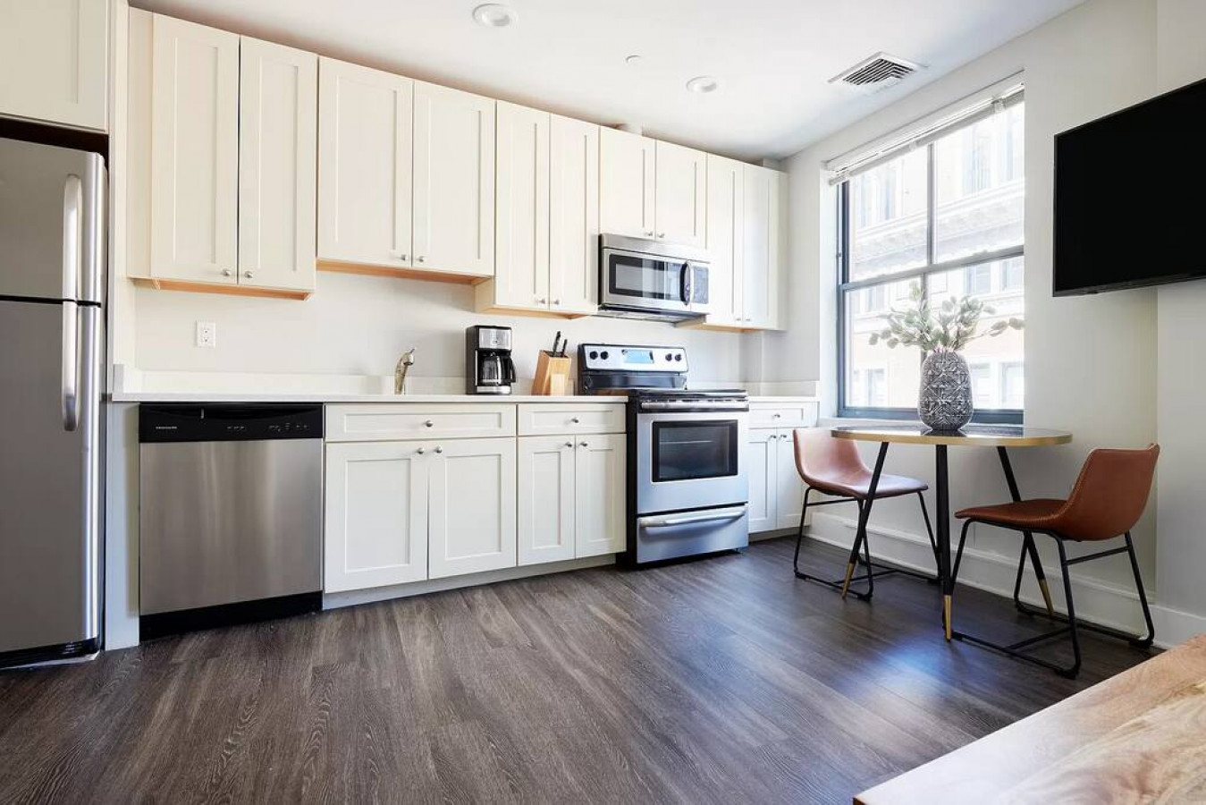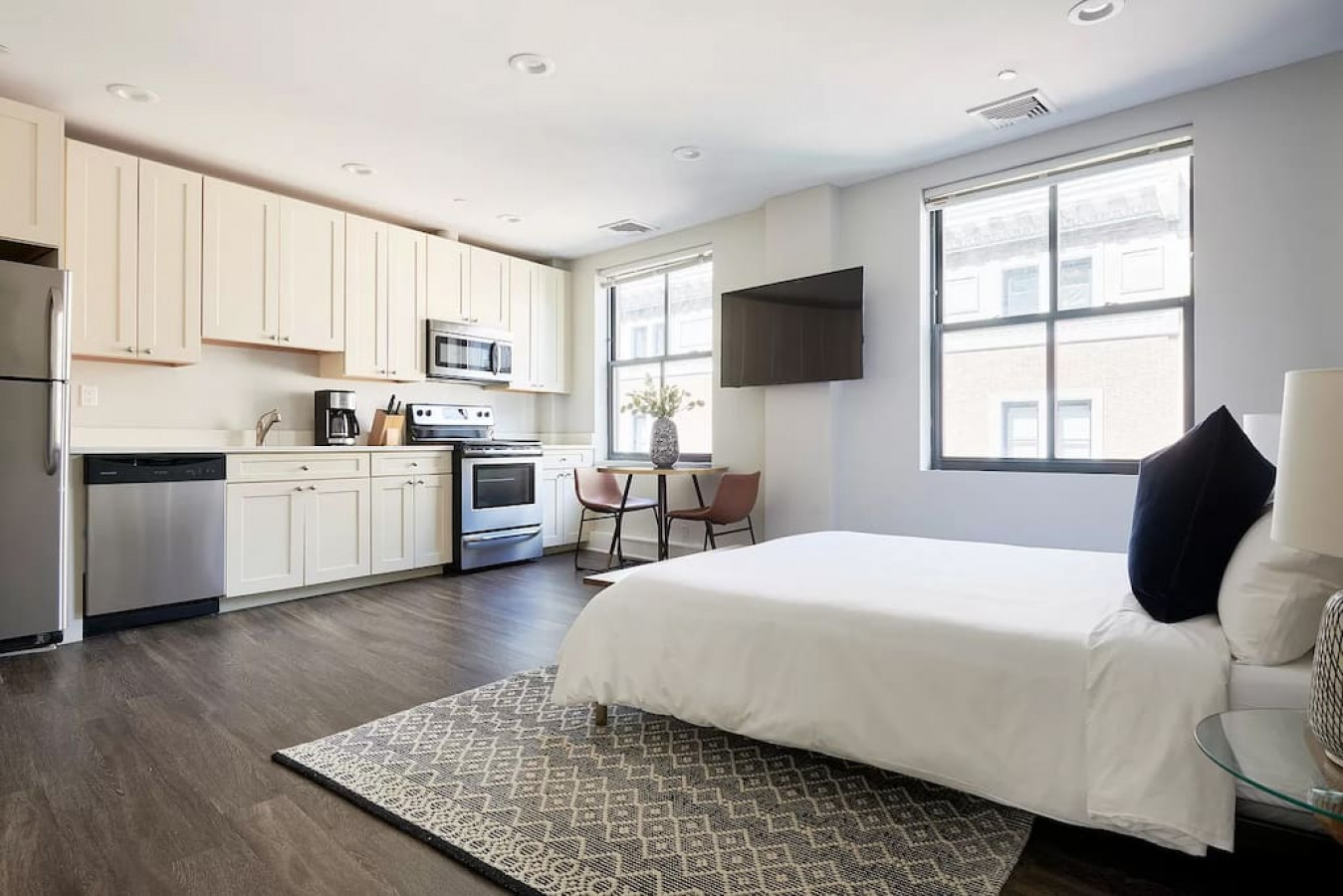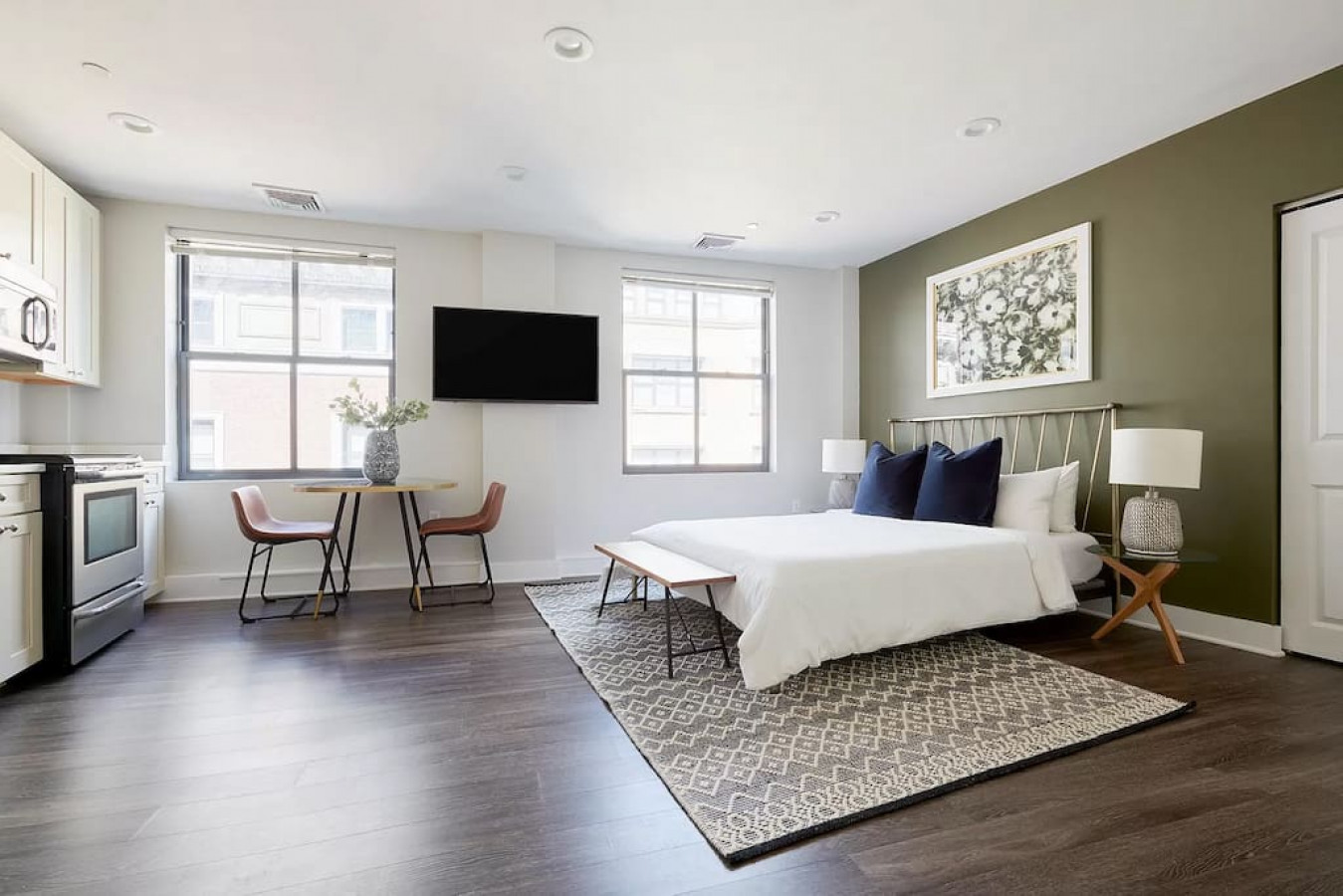 This beautifully designed studio apartment with laundry in unit is located in the heart of the Financial District, just a 3 minute walk to Public Transportation. Fully stocked kitchen has everything you'd need to cook a meal. The unit is accessible by self-check-in via our smart lock system.