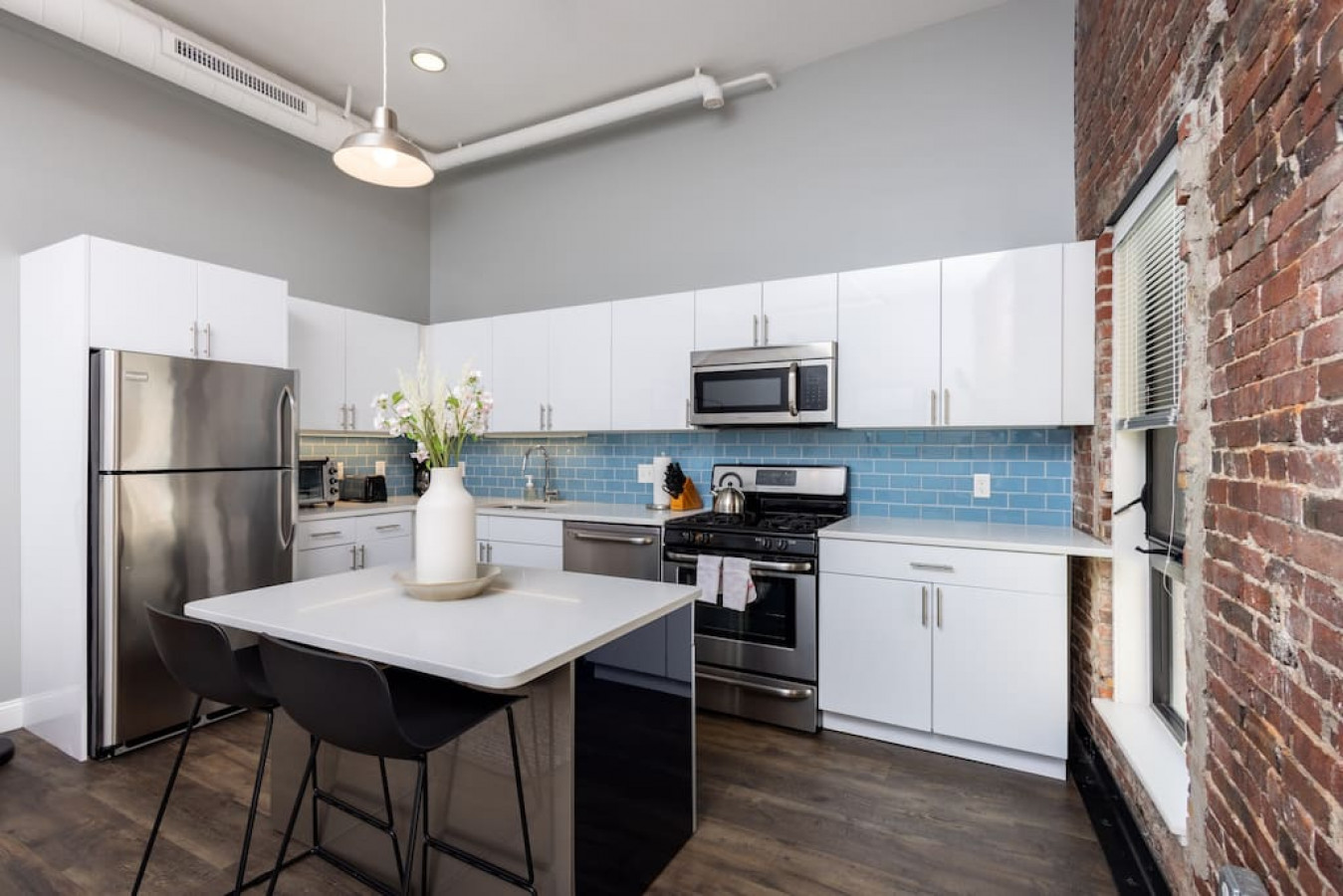 This beautiful apartment has exposed brick and an industrial feel, but also the warmth and comfiness of an inviting home. What makes this space unique is it's history. The building hallways all show historic photos of the neighborhood dating back to the 1800s! Just steps from the Boston Common, this building has had many tenants over the decades, from retail shops to manufacturing companies!