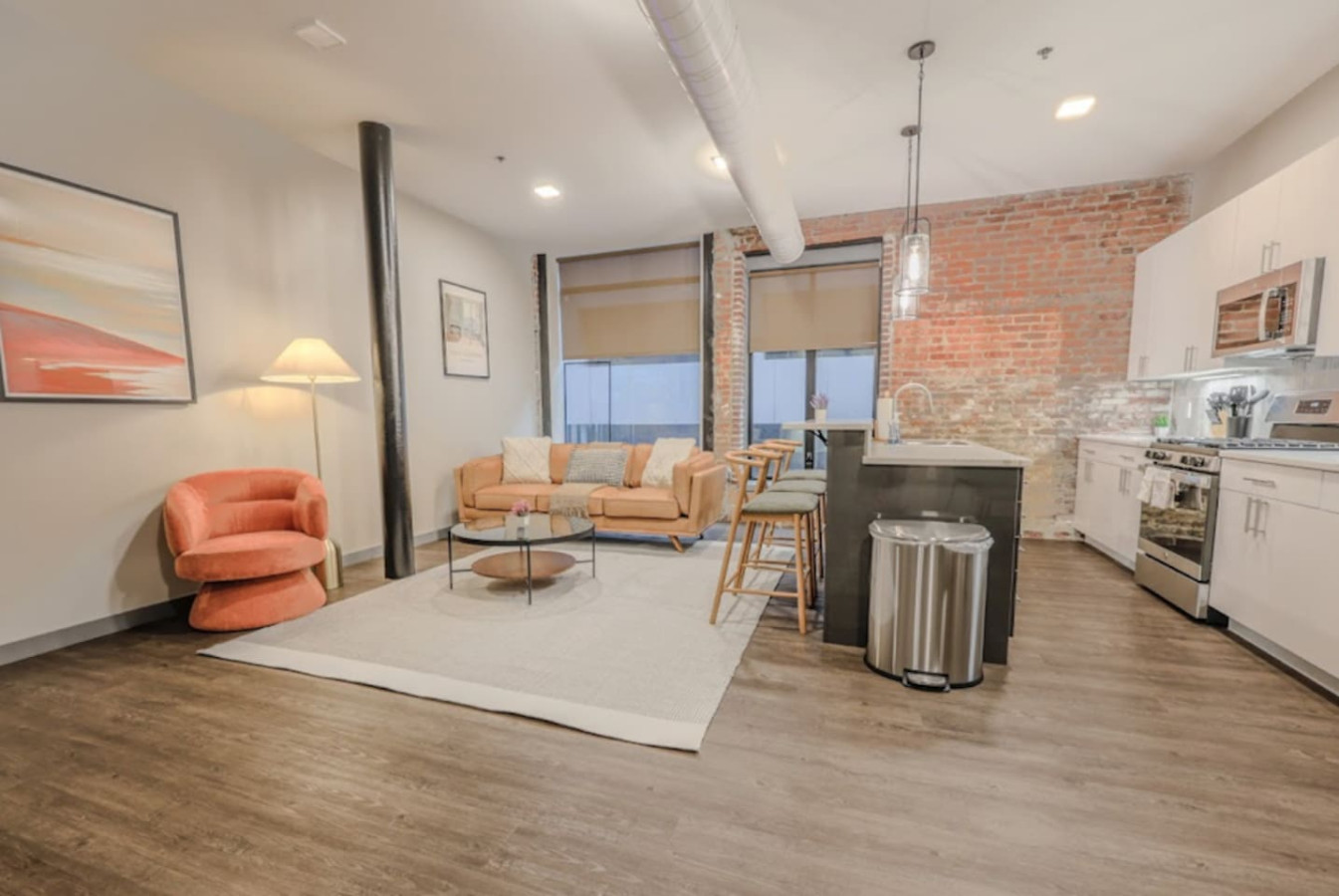 This beautiful apartment has exposed brick and an industrial feel, but also the warmth and comfiness of an inviting home. What makes this space unique is it's