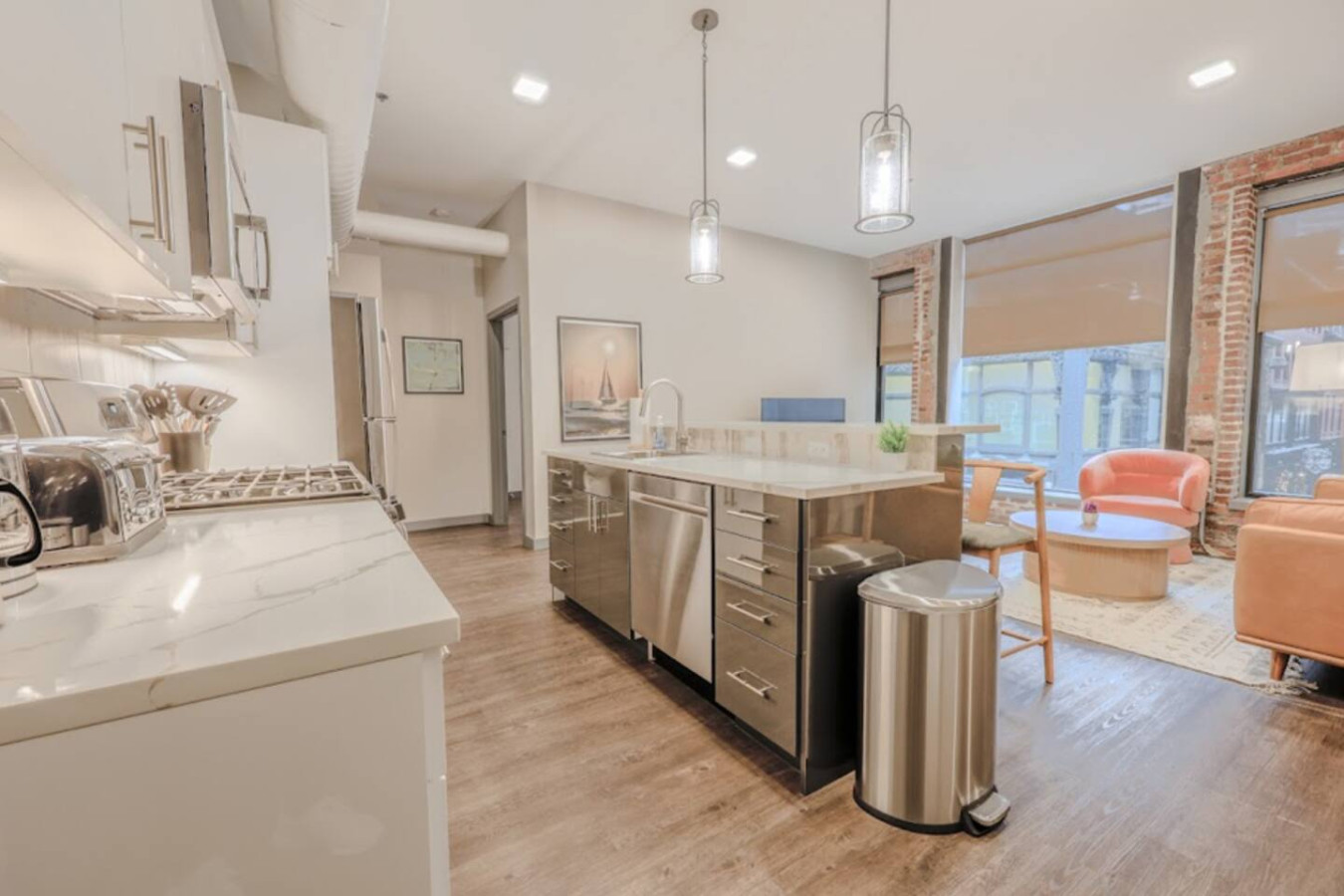 This beautiful apartment has exposed brick and an industrial feel, but also the warmth and comfiness of an inviting home. What makes this space unique is it's history. The building