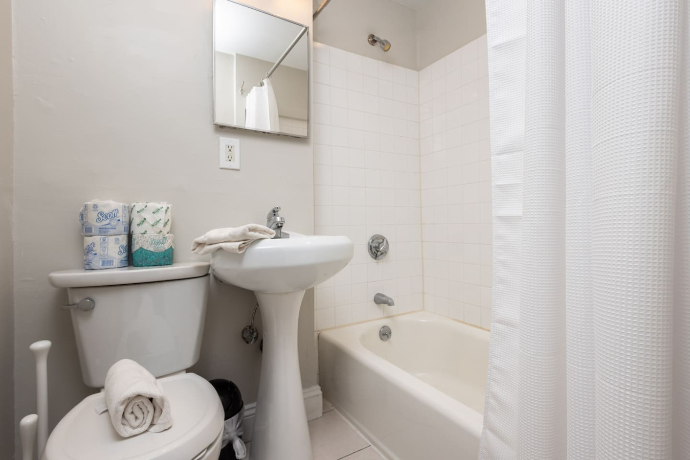 Our heating system has one thermostat for the entire apartment building, which just means you can crack a window if it gets too hot on the upper floors. We have an on-call employee that lives nearby who can help during normal business hours, and a 24/7 guest messaging team to support.