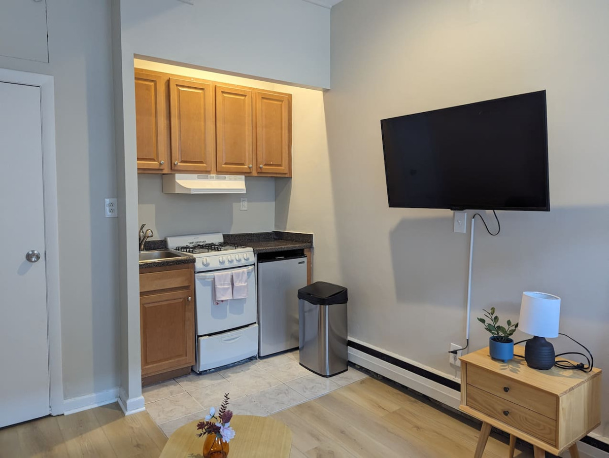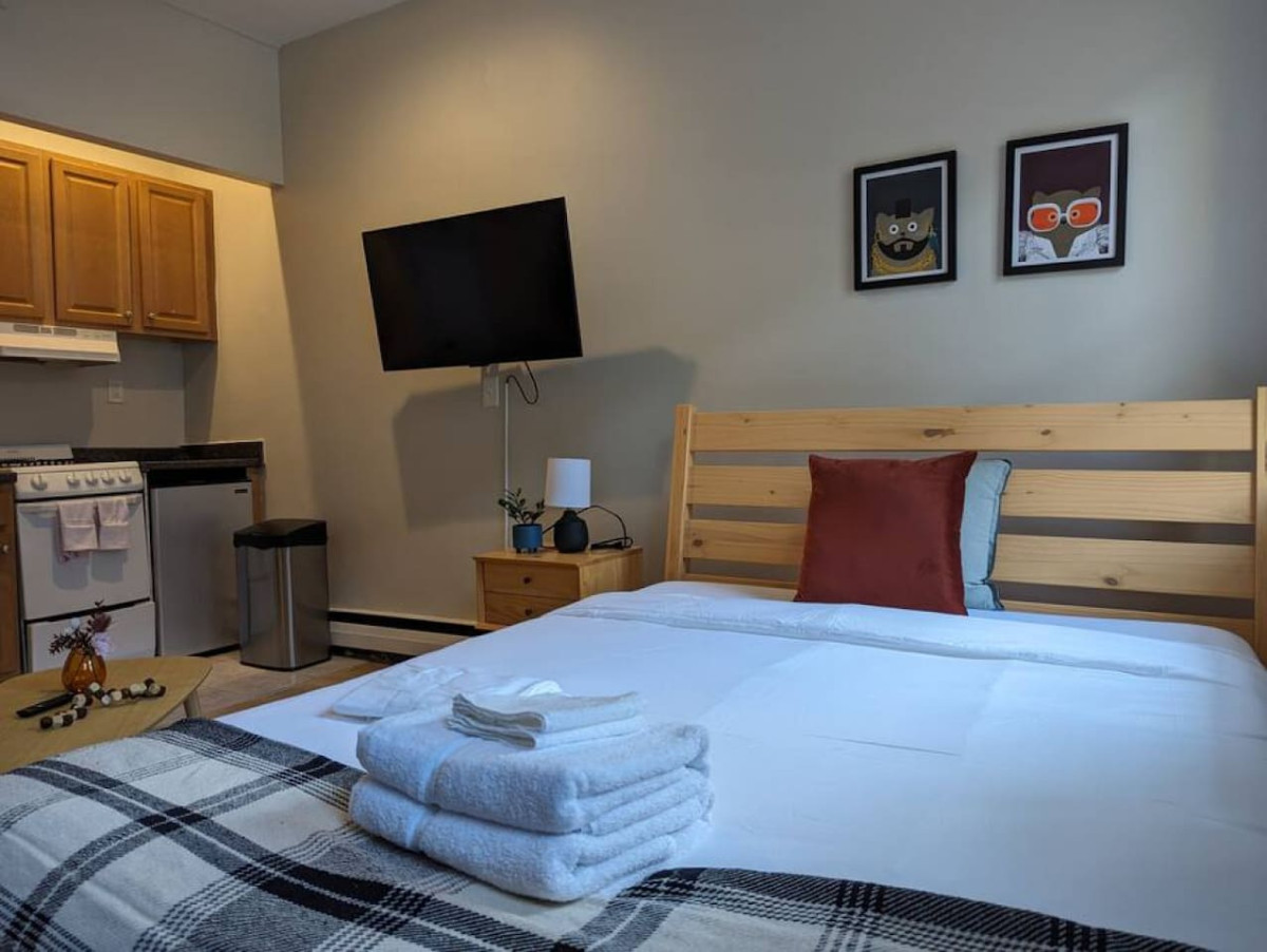 Our heating system has one thermostat for the entire apartment building, which just means you can crack a window if it gets too hot on the upper floors. We have an on-call employee that lives nearby who can help during normal business hours, and a 24/7 guest messaging team for support.