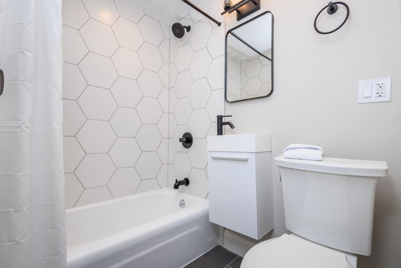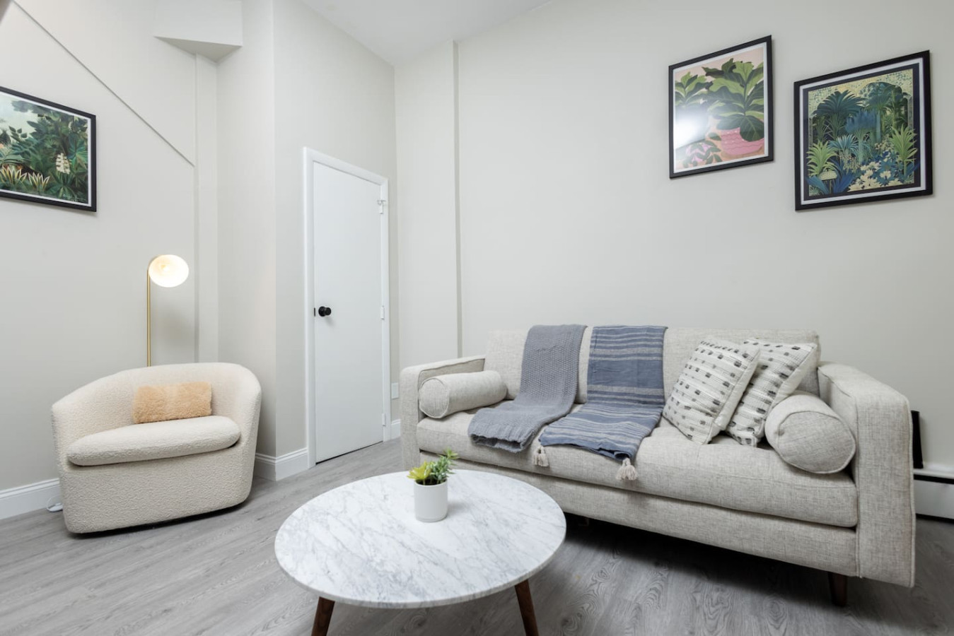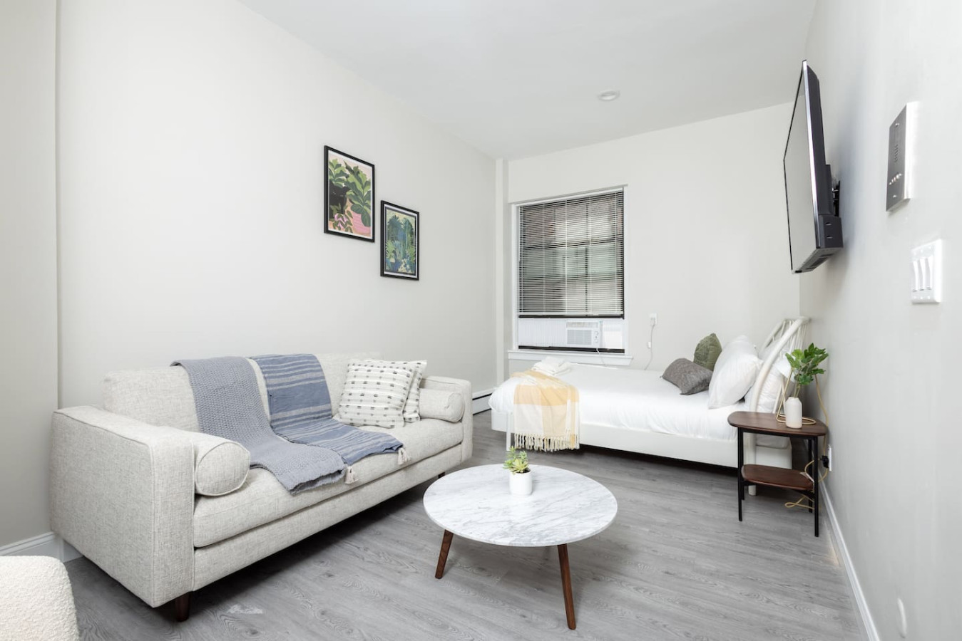 Everything you need and nothing you don't. Our motto is to provide fairly priced furnished apartments in great locations. The location will make up for the cramped space, but I think you'll find that once you settle in, you don't always need a ton of space! This unit is unique because it has a long hallway once you enter the apartment and the space is located in the back of the building so it should be super quiet.