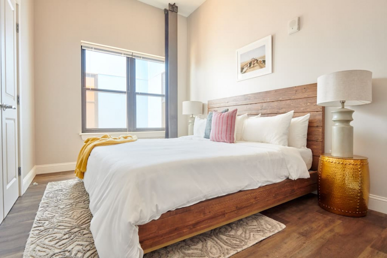 Each bedroom is thoughtfully designed, from the linens pillows and mattress to storage and lighting. Most bedrooms face inwards into a lightwell, or outwards into a city street, so you may not have "Amazing" views of a city skyline, but you will likely have a nice dark night sleep.